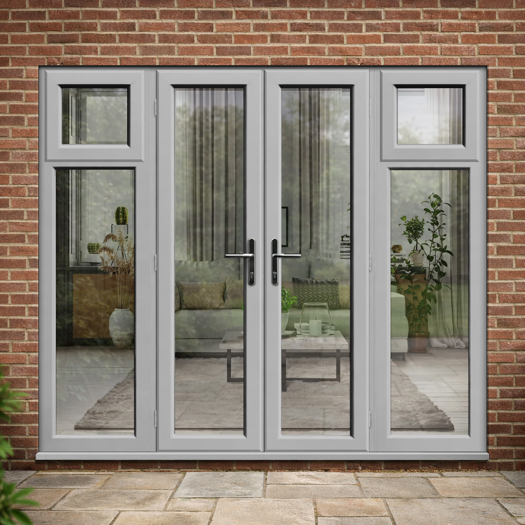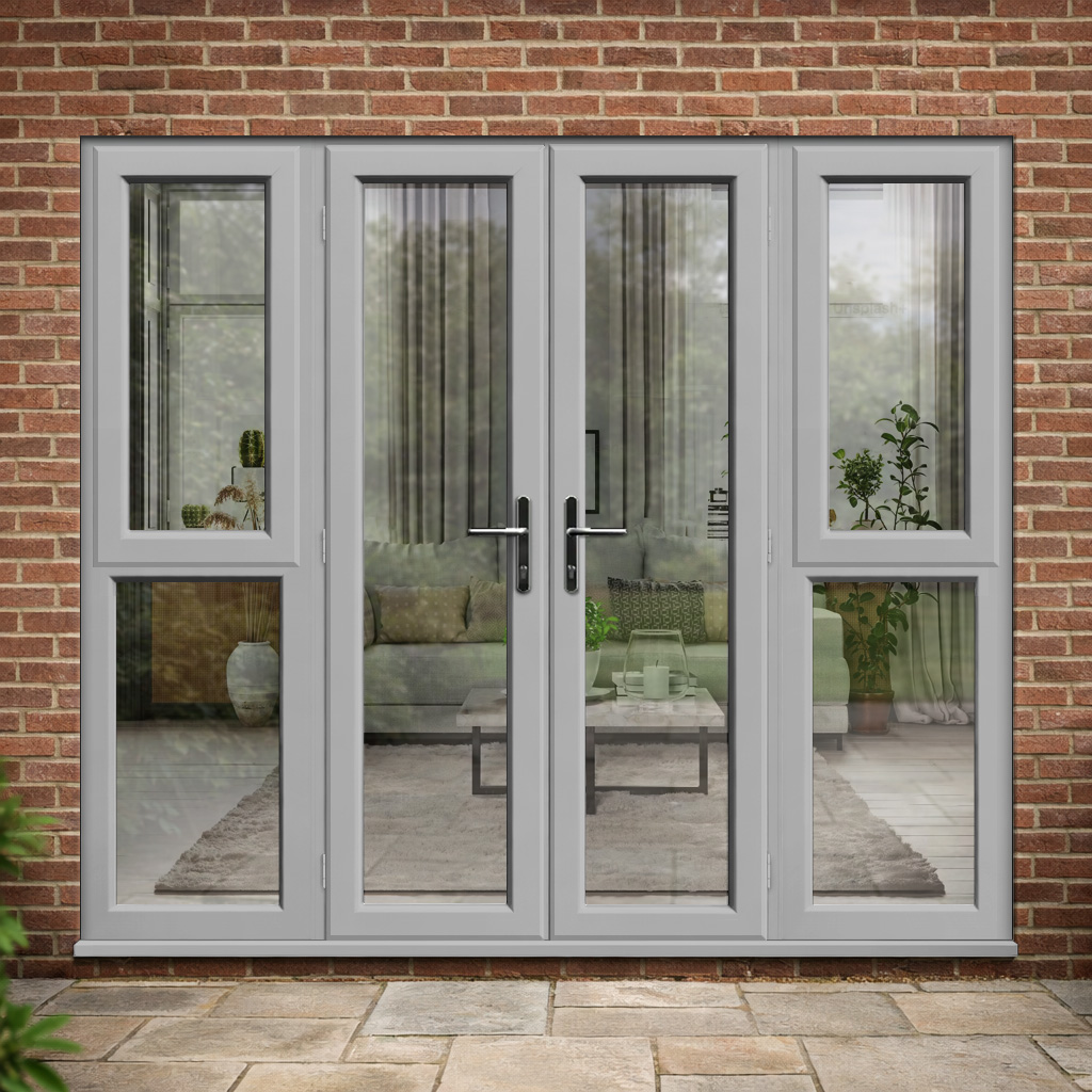 Agate Grey uPVC French Doors with Opening Side Panels