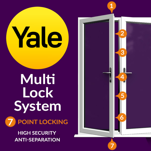 - Our French doors are supplied with an ultra secure, approved 7 point Yale Locking system