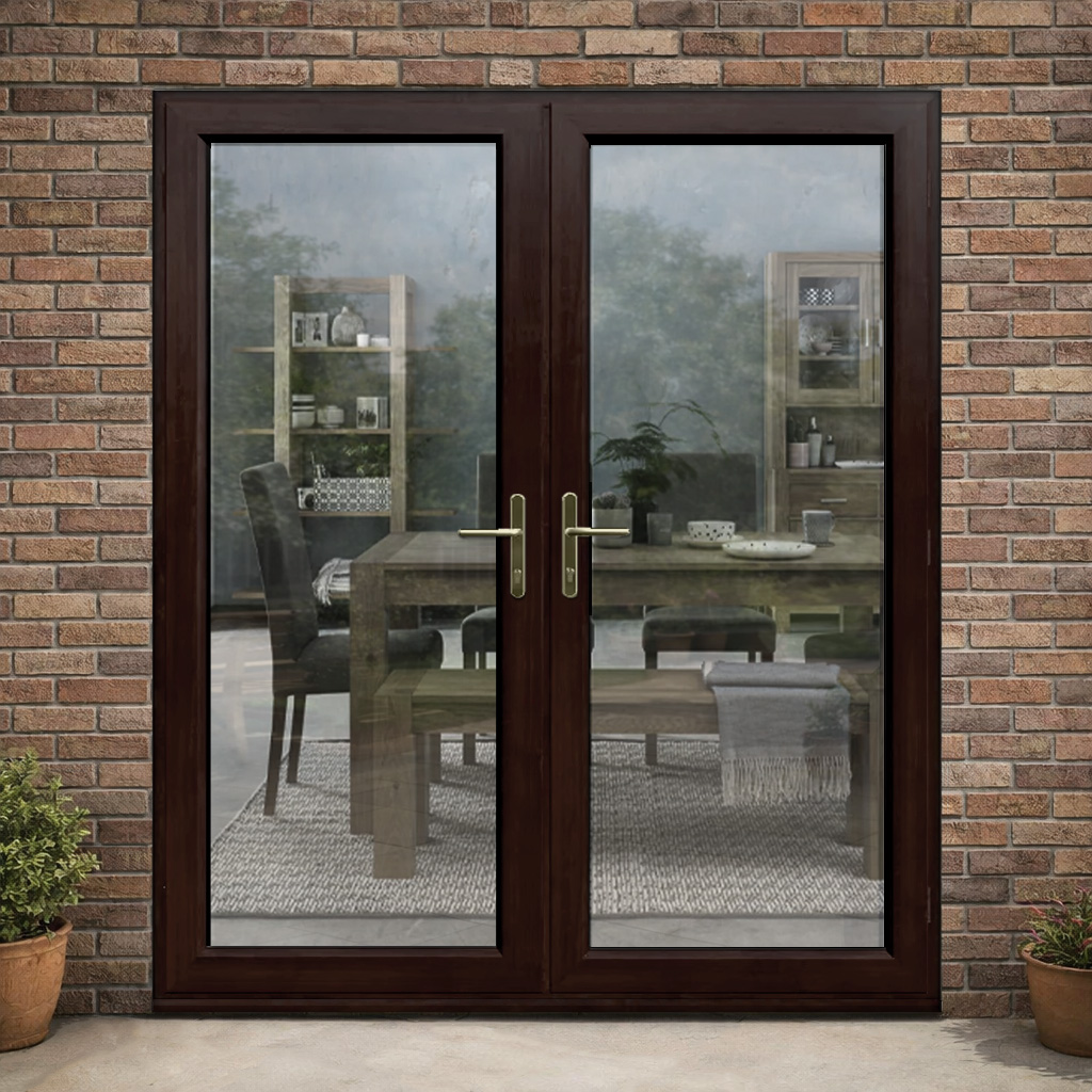 A made to measure uPVC French door in rosewood